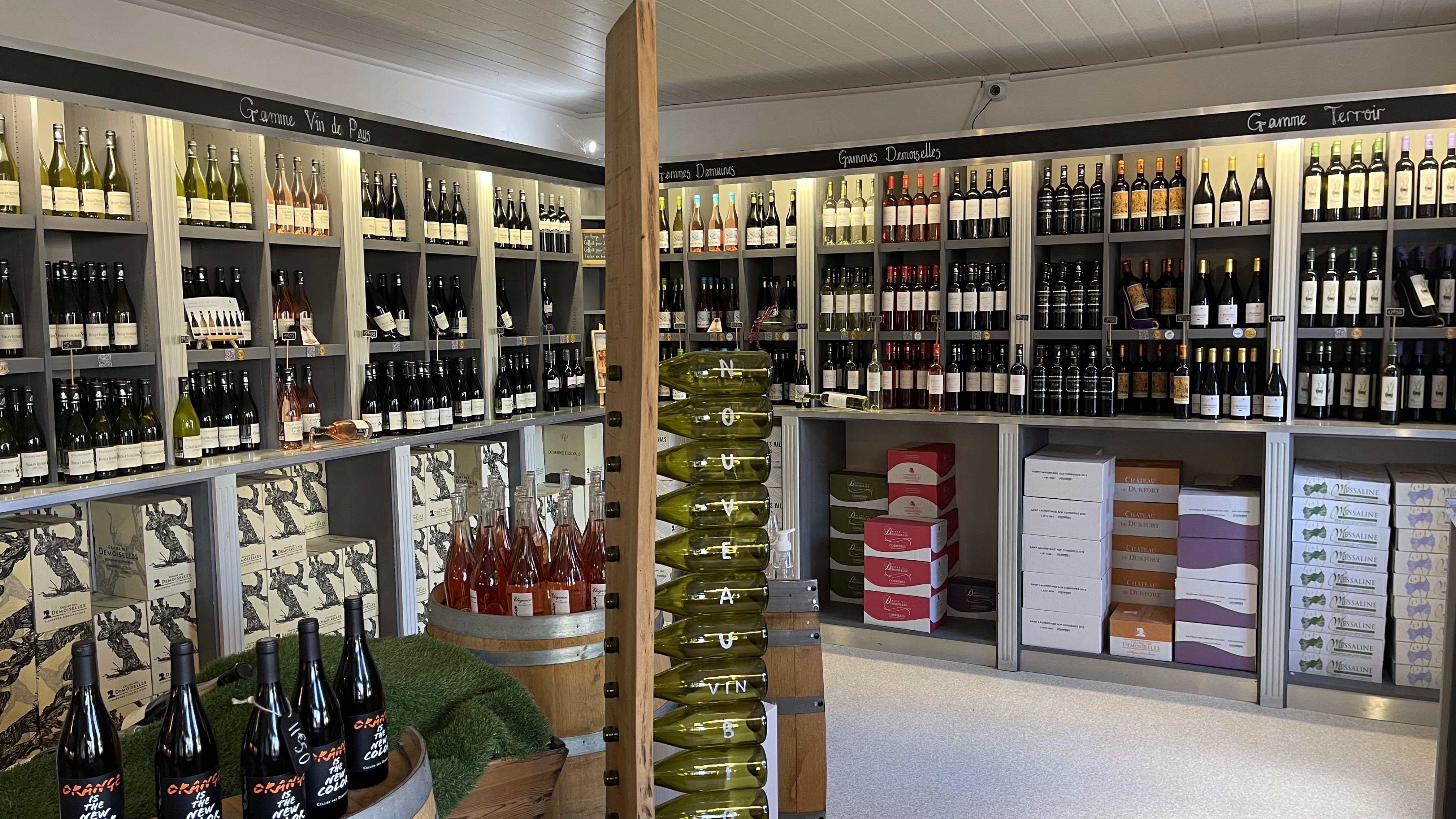 Incontournable Blanc des Demoiselles, un excellent blanc du Languedoc, très facile à boire et pour accompagner la gastronomie, qui fait l'unanimité chez tous ceux à qui je l'ai fait goûter (dont de fins amateurs de vin). Grande variété de rouges à petits prix (6 à 13 euros) : le Durfort est un Corbières incontournable, une valeur sûre, d'autres vins proviennent de l'appellation Boutenac, grand cru parmi les Corbières. Je viens régulièrement ici depuis près de 10 ans, toujours avec le même plaisir, même si mon lieu de villégiature se situe à 1h30 de route.