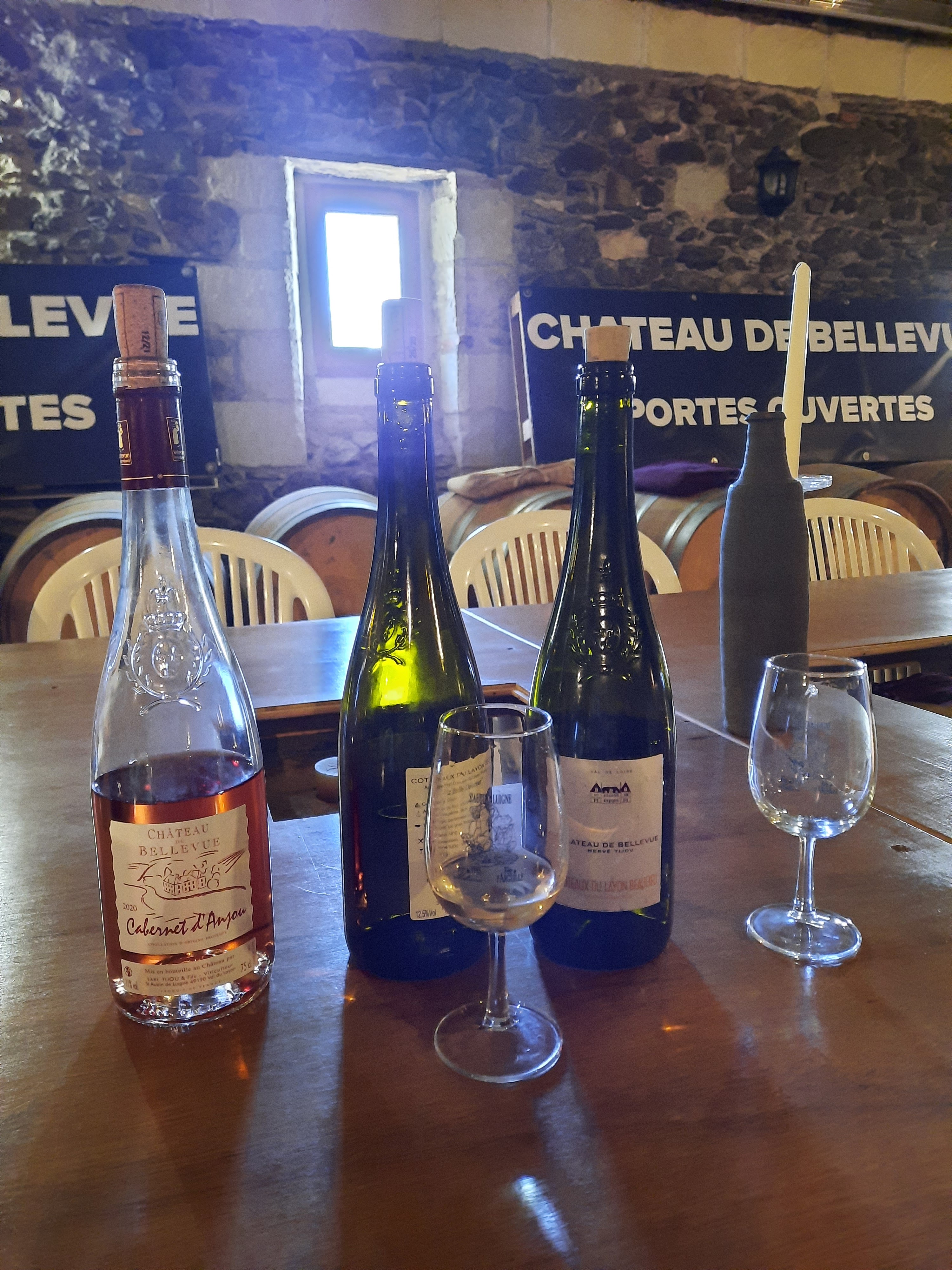 Fin de repas chez le CHENIN à Savennières et ne voulant pas rentrer de suite ,anniversaire oblige nous entrons au château de Bellevue .La chaleur ,sans épater les personnes ,la générosité sans penser à quelqu'une facture future , la surprise de la sagesse de Mme TIJOU nous laisser nous submerger de toutes ces bouteilles alignées sur une table au fond du caveau .Et c'est pour pour un voyage extraordinaire ,magique ou les sens se mêlaient au sens des cépages !.Mais chut allez y et vous comprendrez .MERCI MERCI ISABELL ET ALAIN DU LOT