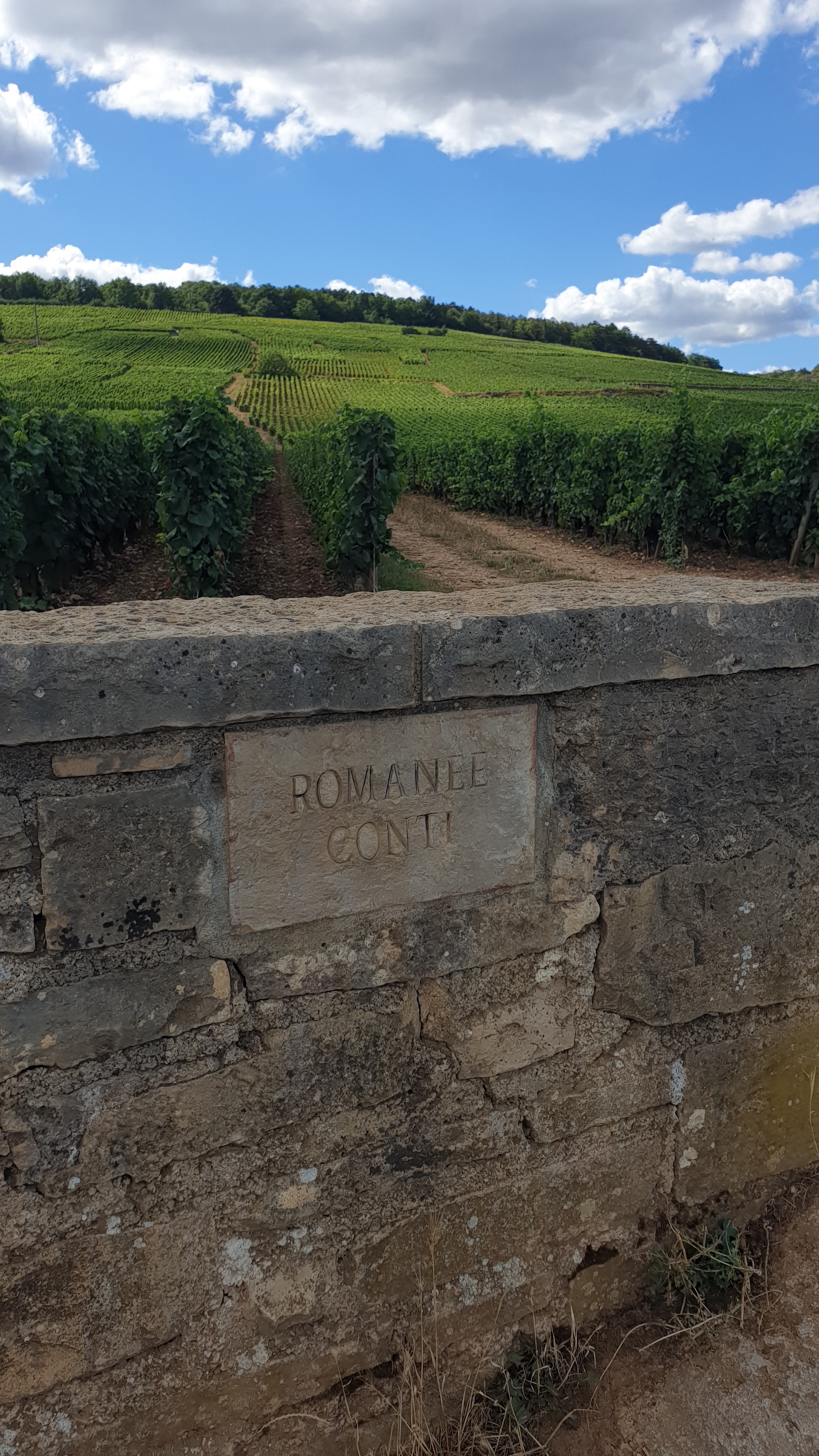 Sur la route d'aller à Paris, juste passer le domaine Romanée Conti, on sait pas que c'est le côte d'or ou le côte nuit, parce qu'on n'a pas de guide pour nous expliquer, bon la prochaine fois.