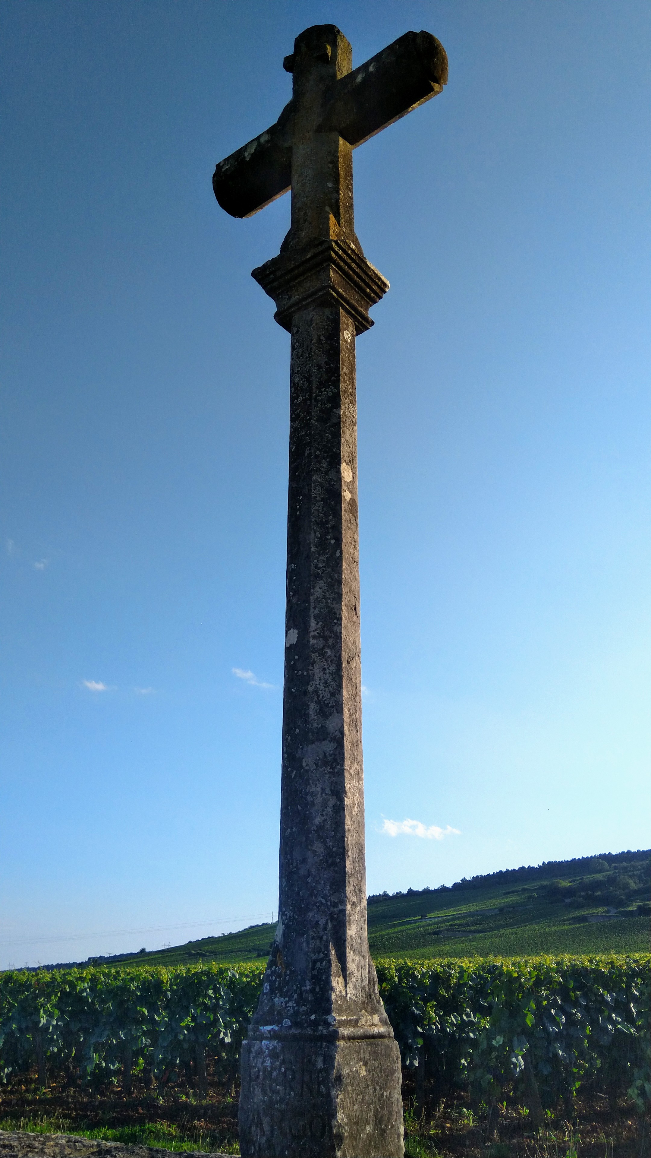 Sur la route des Grands Crus impossible de ne pas s’arrêter devant cette croix marquant l’entrée du clos de la Romanée-Conti. Admirez ce vignoble mythique !