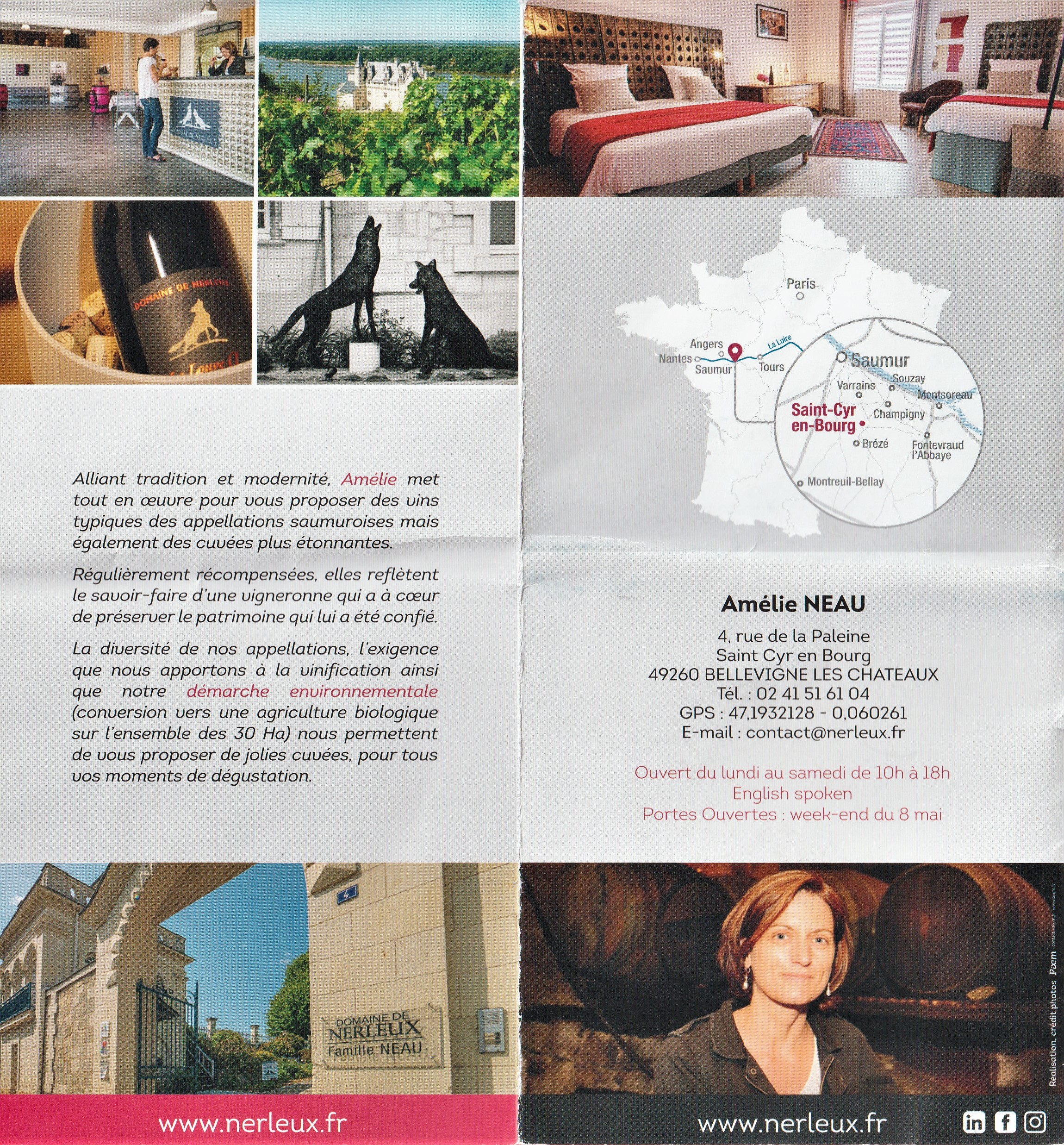 Nous avons vécu la « full » expérience au domaine de Nerleux avec week-end entre amis au gîte et visite et dégustation au domaine ! Excellente expérience. Le gîte du Domaine de Nerleux est idéalement situé, à quelques kms de Saumur et de la Loire en plein cœur des vignes. Très propre, tout équipé, aménagé avec goût … tout était réuni ! Avec en plus, une (super) visite du domaine et une dégustation des excellents vins produits par Amelie Neau. Mention spéciale et chapeau bas pour Mathilde, notre guide lors de la visite et dégustation : très compétente, disponible et souriante ! Bravo. Je recommande un stop au Domaine de Nerleux.