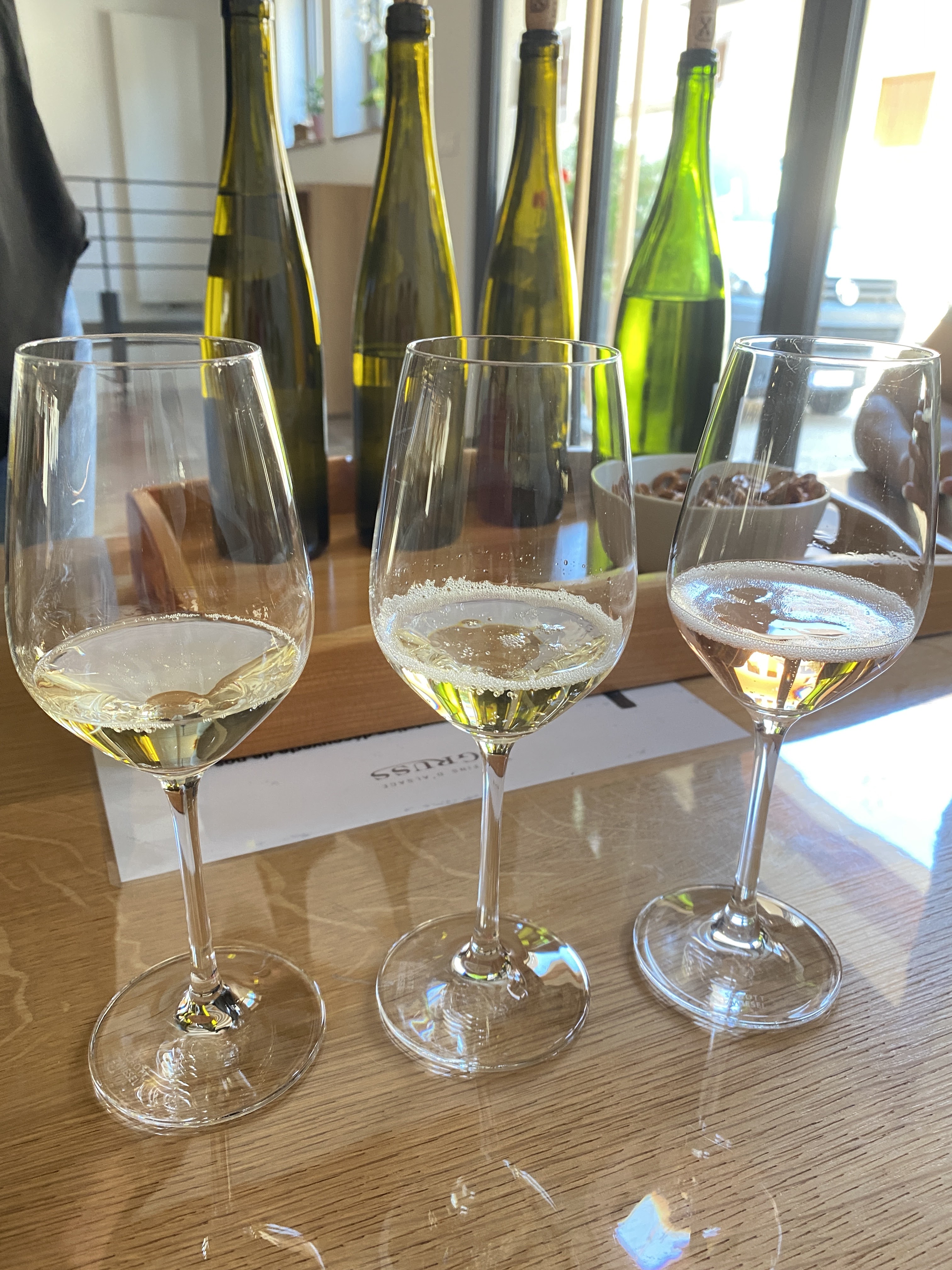 Nous avons visité Gruss en avril 2019 depuis l'Italie. Ils sont très gentils et leurs vins sont excellents. Aujourd'hui (6 janvier 2021) nous avons dégusté leur pinot noir Grand V 2017 : c'est très très bon. Nous espérons revenir bientôt visiter Gruss !